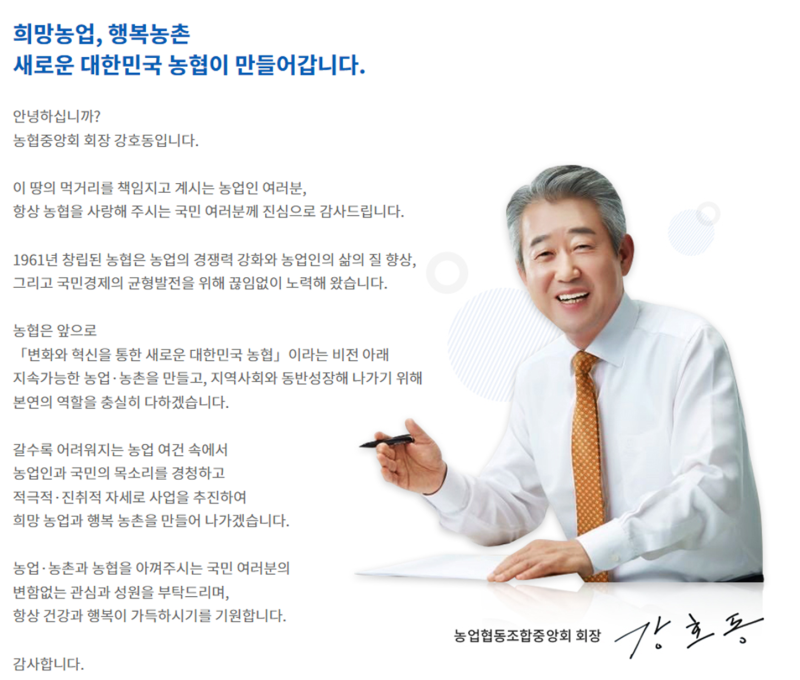 비전: 농업인이 행복한 국민의 농협