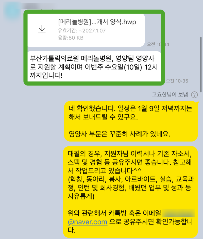 부산가톨릭대학교 메리놀병원 영양사 채용, 합격 자기소개서 작성법! 자소서 문항 첨삭/대필 후기 ✨