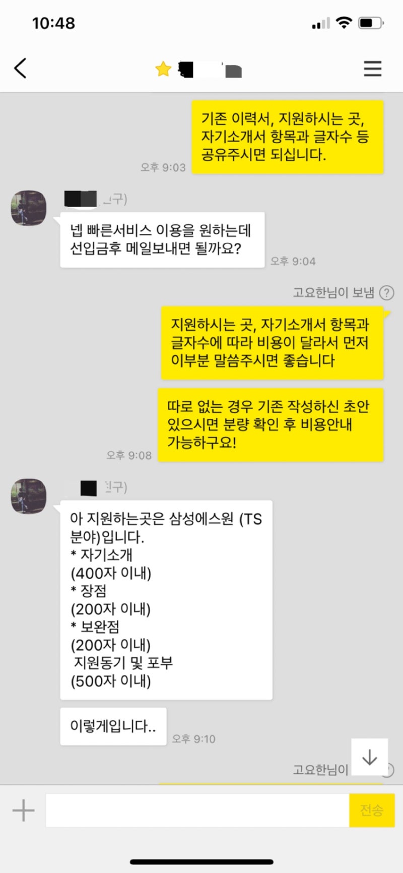 • >> 자소서 초안 작성/첨삭: 제가 직접 초안을 작성하거나, 기존 초안을 기업과 직무에 최적화된 내용으로 첨삭해드렸어요.