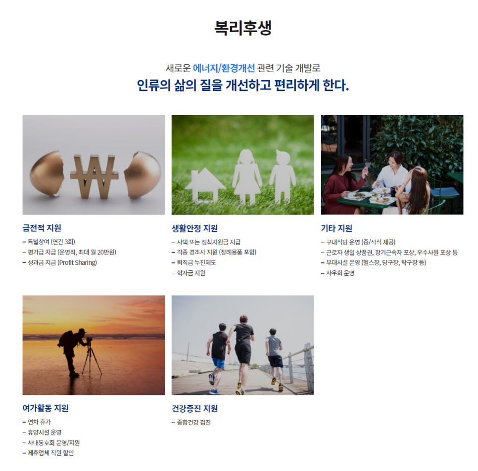 - 인재상: 도전적이고 혁신적인 사고를 가진 인재, 고객 중심적인 마인드를 가진 인재, 끊임없이 배우고 성장하는 인재, 소통과 협력을 중시하는 인재, 안전을 최우선으로 생각하는 인재
