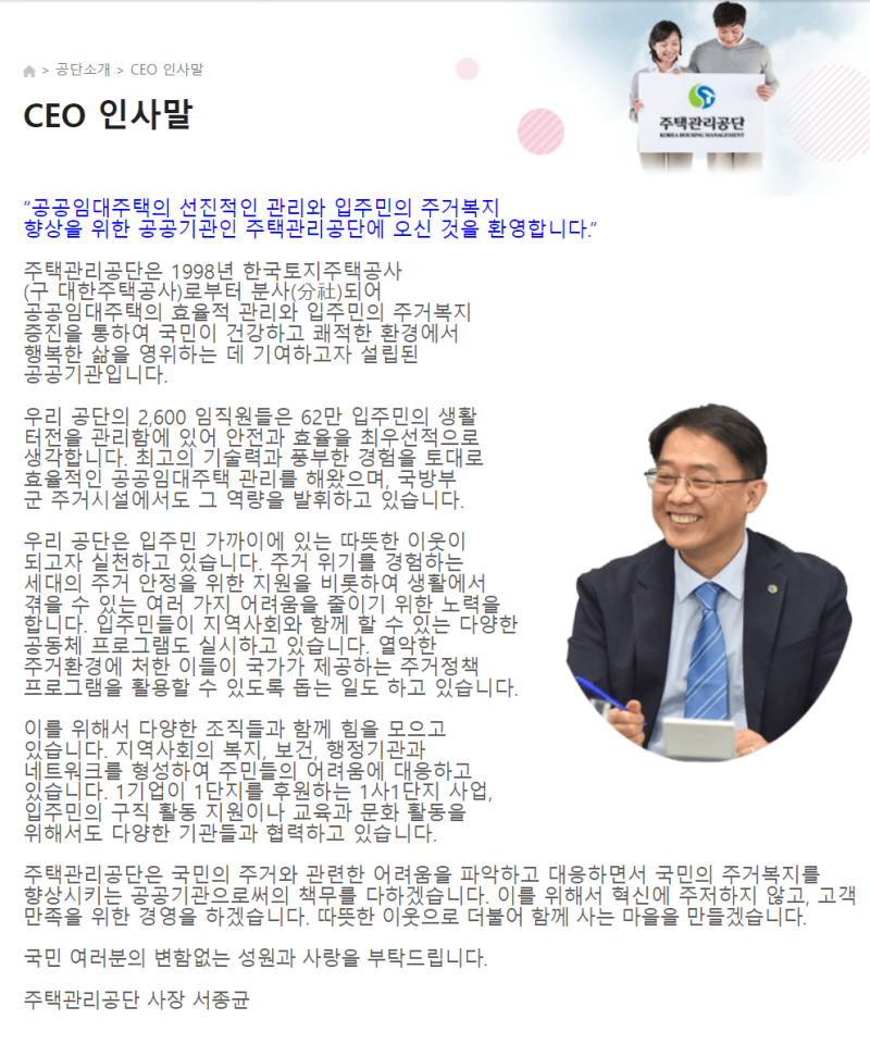 - 비전: 국민 주거 행복을 선도하는 최고의 주택관리 전문기관