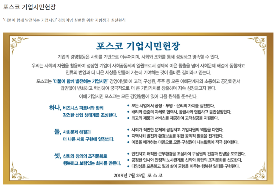 • 비전: 더불어 함께 발전하는 기업시민 (Corporate Citizen) – 사회적 책임과 지속 가능성을 중시하는 비전! 🌱