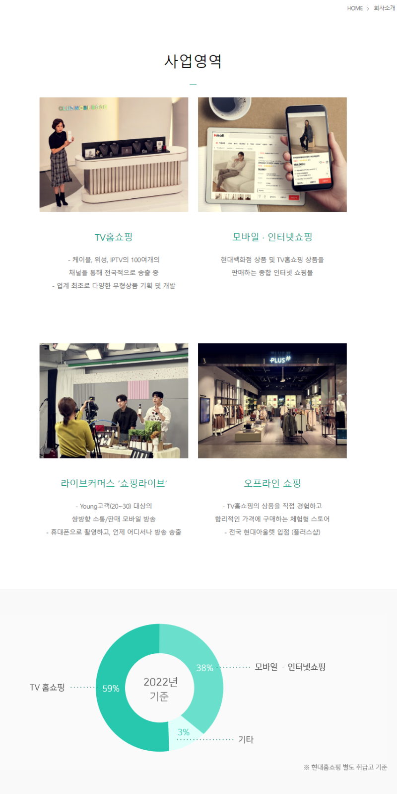주요 사업: TV홈쇼핑, 인터넷쇼핑몰, 모바일쇼핑, 카탈로그쇼핑