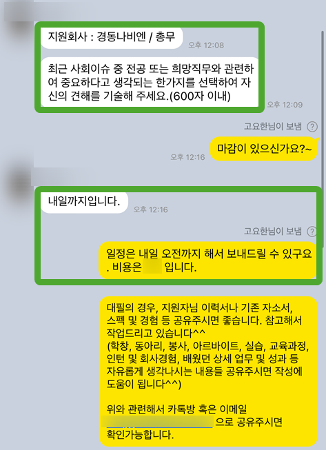경동나비엔 채용, 총무 직무 합격 자소서 작성법 & 자기소개서 문항 첨삭 대필 후기