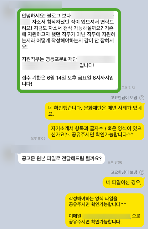 영등포문화재단 자소서 합격 전략! 자기소개서 첨삭 후기