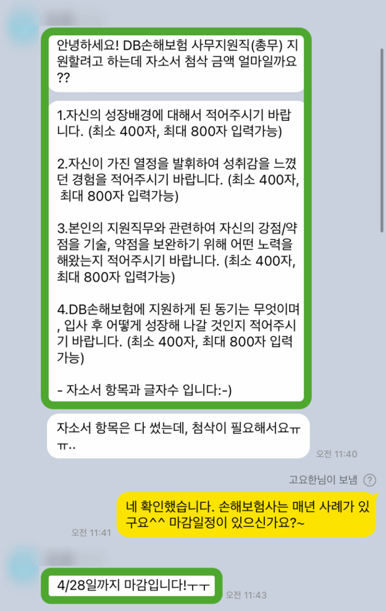 DB손해보험 자기소개서 작성법 자소서 문항 첨삭 대필 합격