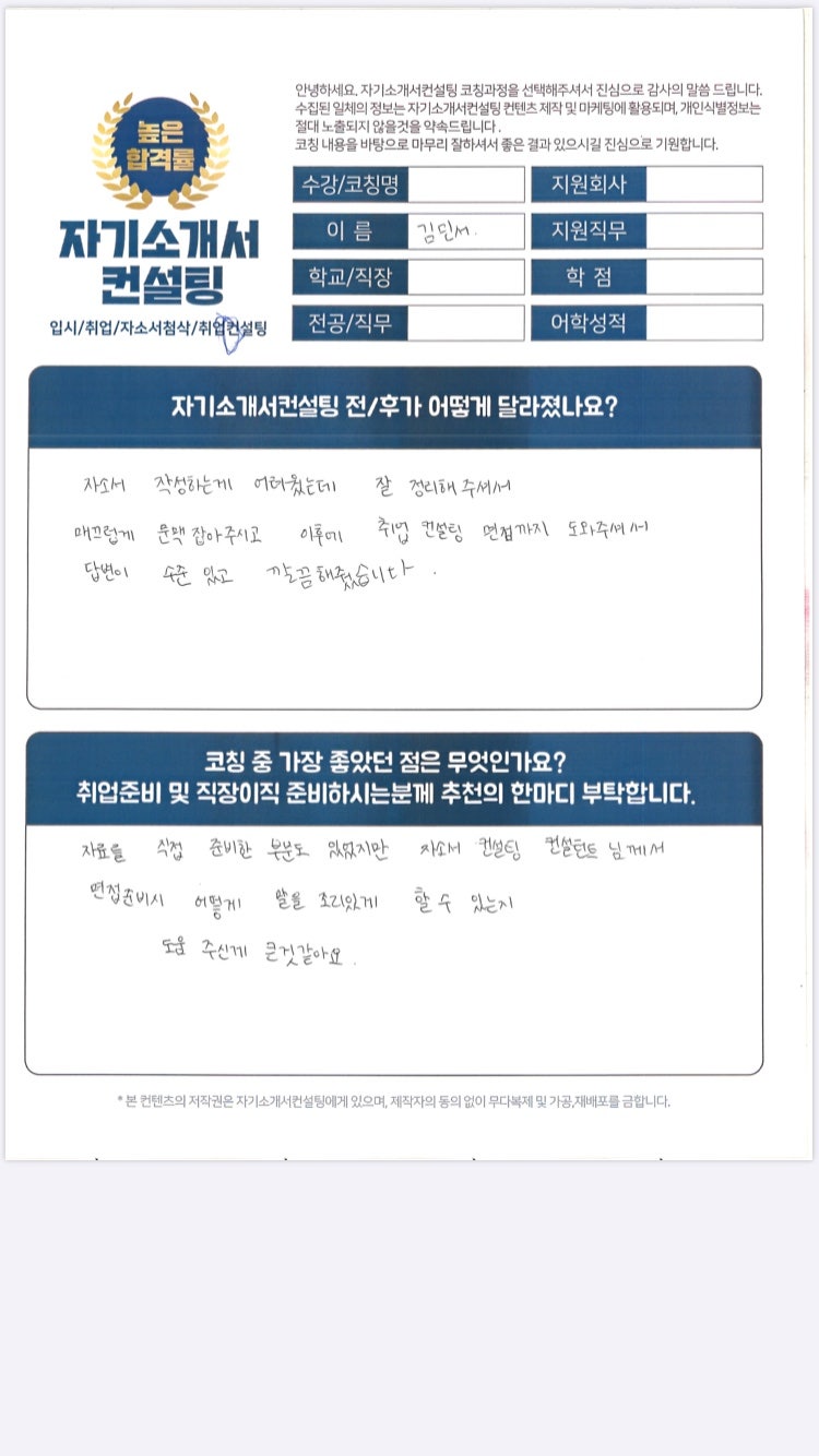 합격으로 이끈 취업성공컨설팅 생생 수기