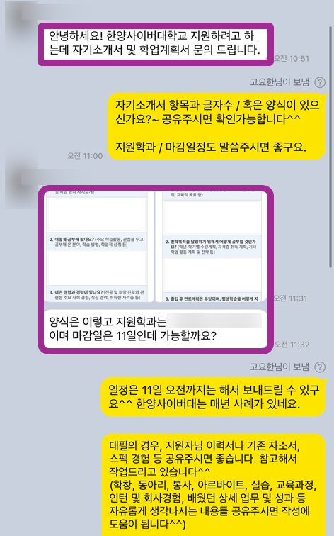 한양사이버대학교 자소서 합격 전략, 자기소개서 첨삭 후기