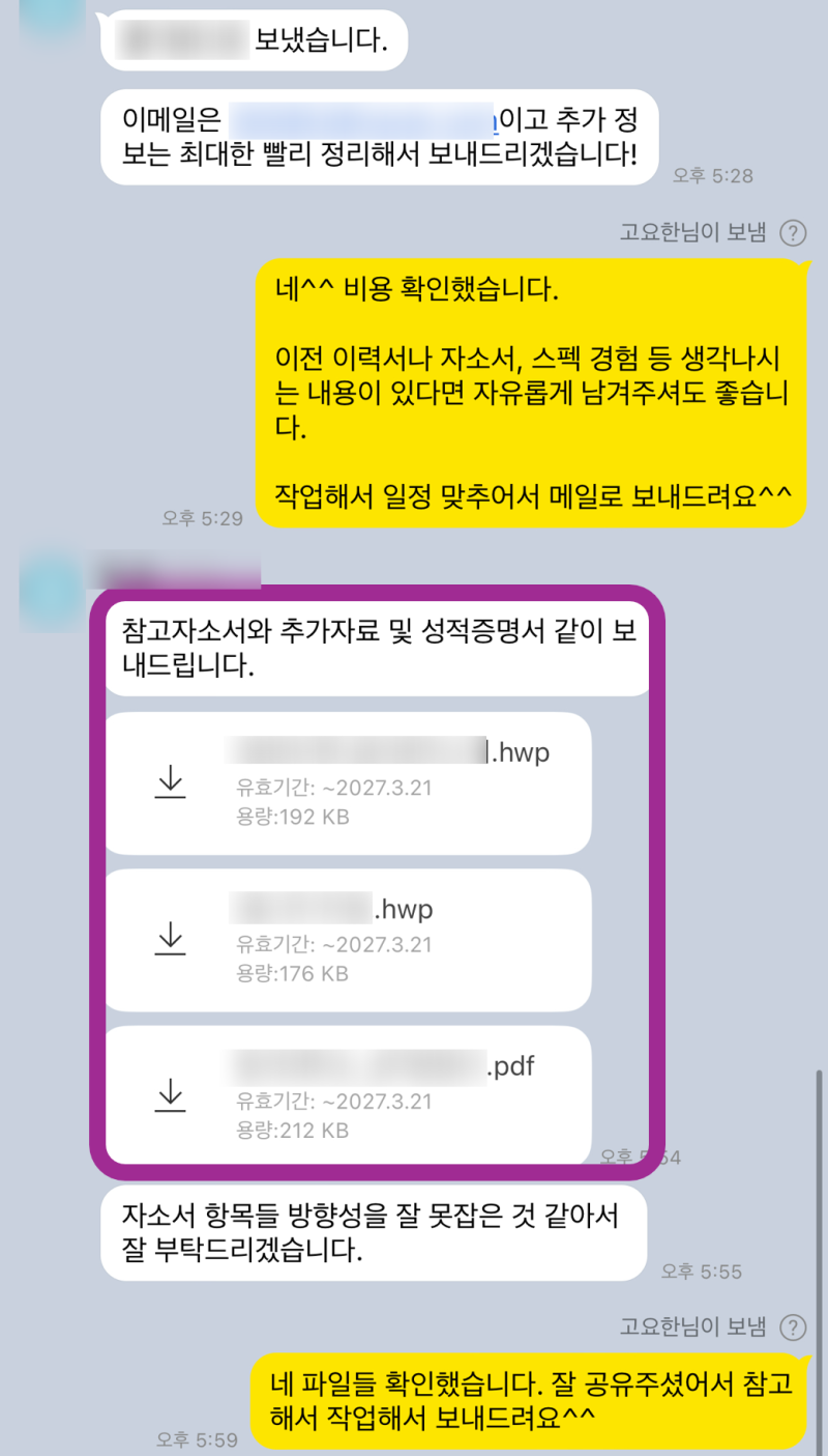 안녕하세요! 👋 수백 건의 대기업, 공기업, 중견기업 등 합격 사례를 직접 써내려간 찐 자기소개서 전문가입니다. 매년 2,000명 이상의 지원자분들과 만나면서 정말 다양한 사연들을 접하고 있는데요. 꼼꼼한 채용공고 분석부터 자소서 작성 노하우까지! 제가 직접 경험하고 체득한 모든 것을 아낌없이 공유드리고 있답니다. ✨ 현재까지 수백 건의 대기업, 공기업 취업, 중견기업, 중소기업, 공무직 등 다수의 합격을 바탕으로 1. 취업 자기소개서 첨삭 및 대행 2. 학업계획서 3. 경력기술서 및 직무수행계획서 진행 4. 면접컨설팅까지 꽉 잡고 있으니, 취업 준비에 어려움을 겪고 계시다면 언제든 편하게 문의해주세요! 😊
