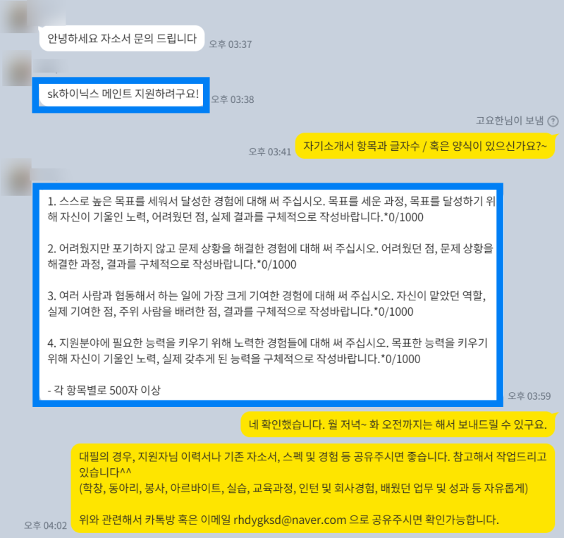 SK하이닉스 자소서 합격후기: 메인터넌스 오퍼레이터 항목 분석