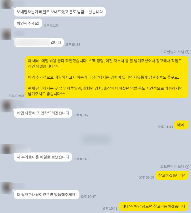 >> 2단계: 이력서 및 자소서 초안 전달